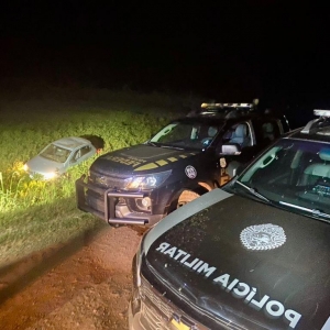 Na noite de ontem quinta-feira (04), policiais militares do BPFRON - Batalhão de Polícia de Fronteira, em ação integrada com policiais federais, patrulhavam a cidade de Guaíra-PR quando avistaram um veículo VW/Gol de cor prata. Ao perceber a presença da viatura policial, o condutor fugiu com o veículo.