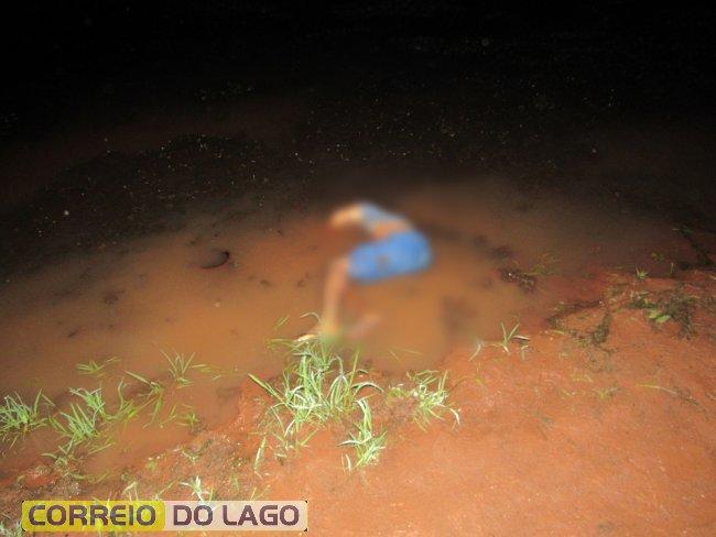 O corpo estava parcialmente submerso e cerca de 13 cápsulas .9mm, deflagradas foram encontradas pela Polícia Militar, que aguarda a chegada da Polícia Civil, Criminalística e IML.