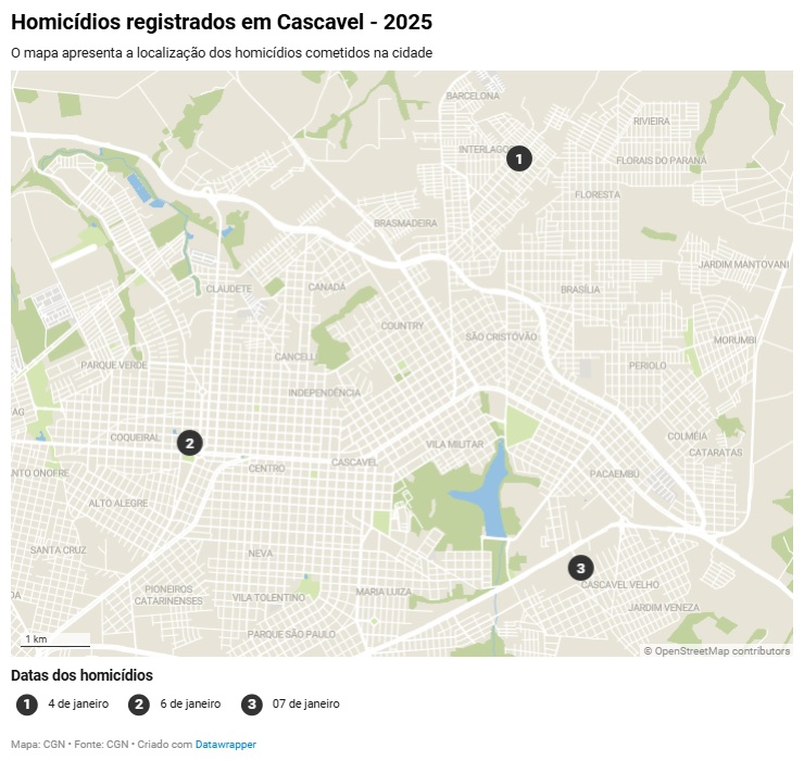 O caso desta terça-feira (7) é o terceiro homicídio do ano na cidade. O primeiro ocorreu na tarde de sábado (04) na região Norte, no bairro Interlagos. Ronaldo Adriano da Silva, de 38 anos, foi morto dentro do próprio estabelecimento, uma distribuidora de bebidas localizada na Rua Leonardo da Vinci, Bairro Tarumã.