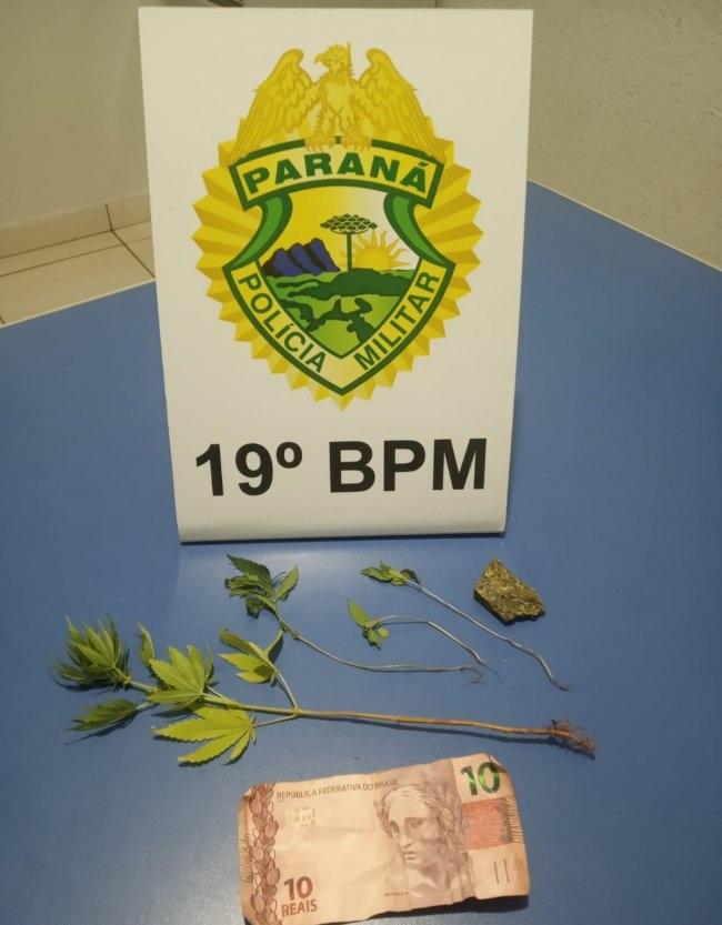 A droga, os pés de maconha apreendidos e o preso foram entregues na Delegacia de Polícia Civil para os procedimentos cabíveis.