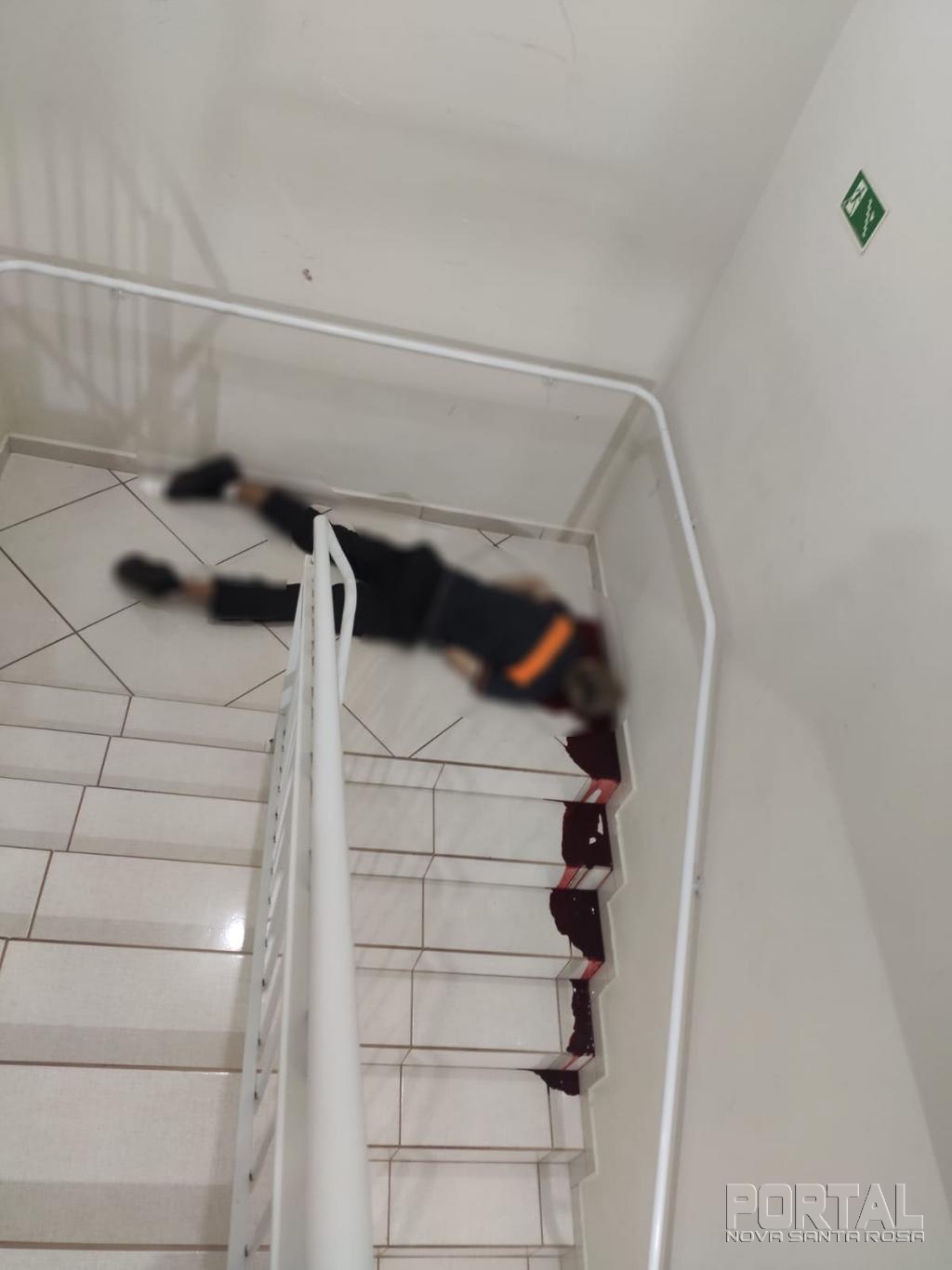 A vítima ficou caída na escada.