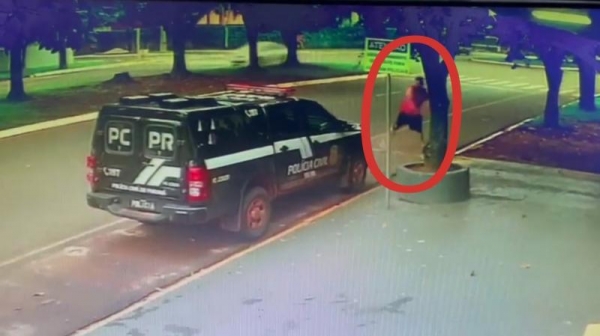 Segundo as informações, o caso aconteceu no último sábado (25). O homem caminhava pela Avenida Marcelino Rolon, quando atirou a garrafa contra aa viatura da PCPR, que estava estacionada em frente a delegacia.