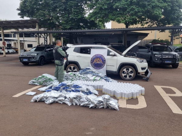 Após um acompanhamento tático, o veículo suspeito foi interceptado e o condutor tentou evadir-se, mas foi contido pela equipe policial. Durante a busca veicular, foram encontrados 311 pacotes e 192 garrafas de agrotóxicos contrabandeados do Paraguai, configurando um crime de contrabando.