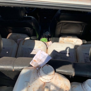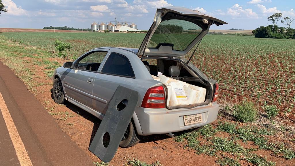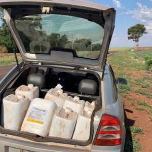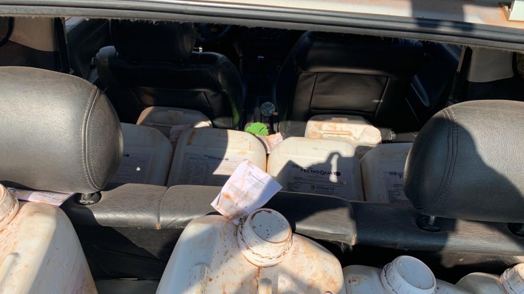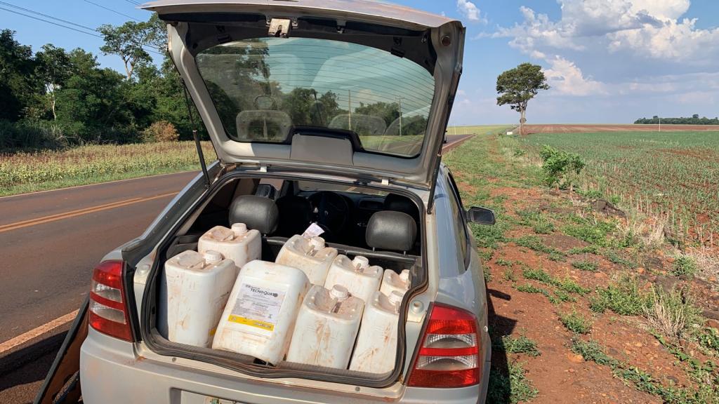 Durante ação dos policiais foi avistado em atitude suspeita um veículo Astra, na abordagem foi revistado o bagageiro e localizado 15 galões (300 litros) de herbicida TecnoQuat SL, oriundo do Paraguai sem a devida comprovação fiscal, comprovando o contrabando.