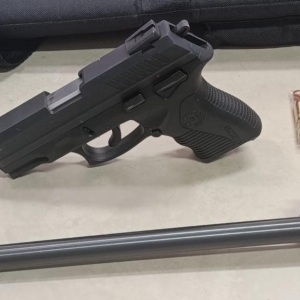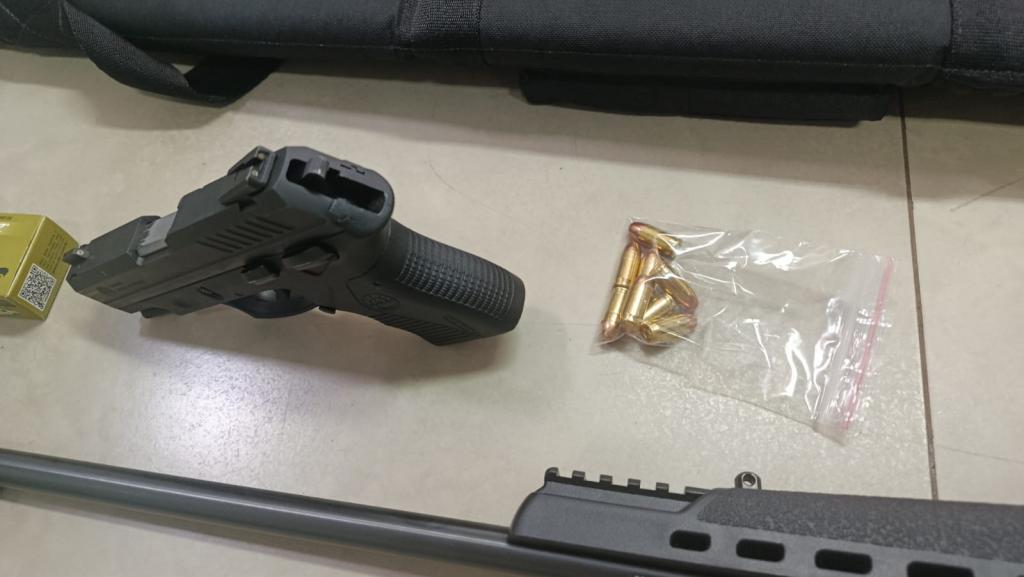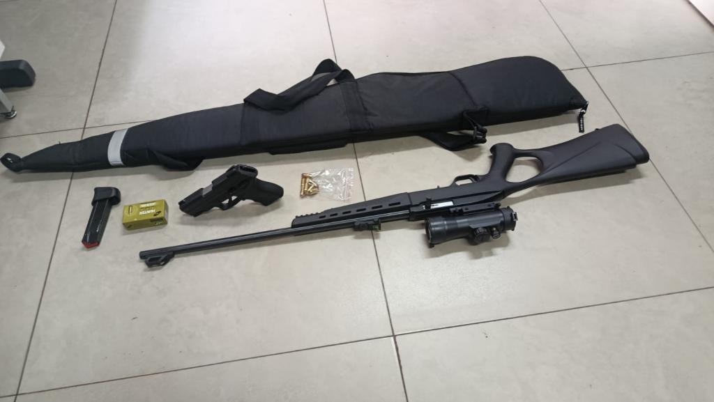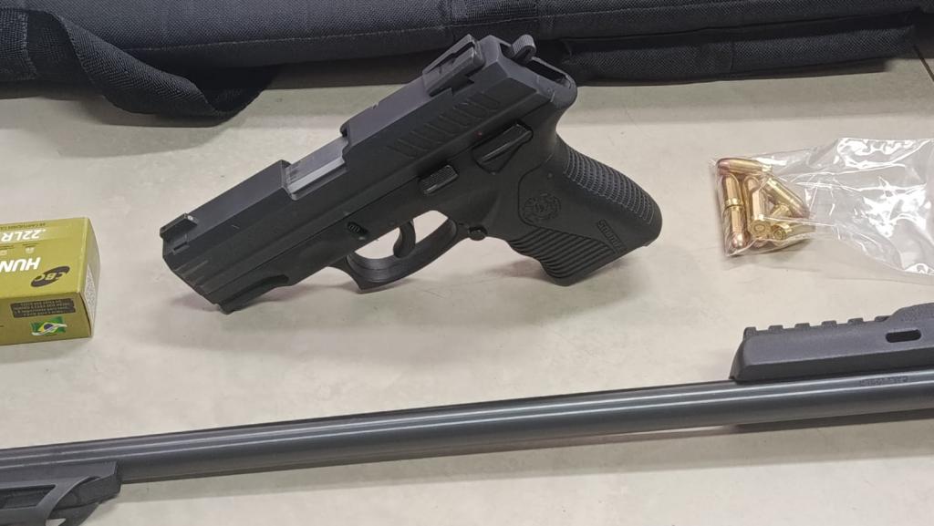 Minutos depois, a PM recebeu nova informação de que o suspeito havia retornado à residência. A equipe deslocou-se novamente e localizou o homem, que recebeu voz de prisão. Questionado sobre outras armas, ele indicou a existência de uma espingarda calibre .22, encontrada no interior do imóvel com nove munições intactas no carregador.