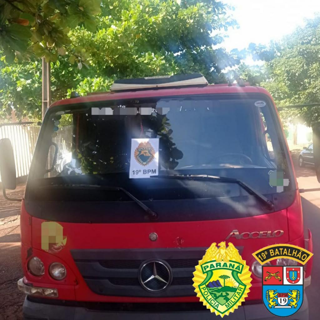 O caminhão M.Benz/Accelo de cor vermelha furtado em Cascavel furtado nesta quarta-feira foi recuperado pela Polícia Militar em Guaíra.