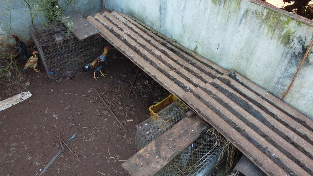 No local também estavam montados "ringues" para as rinhas, dentro outros instrumentos e apetrechos relacionados a briga de galos.