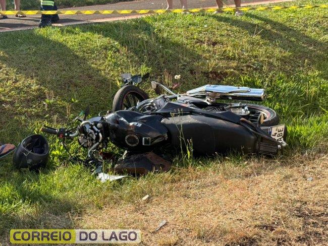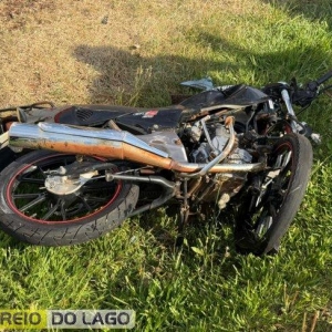 Um motociclista morreu após se envolver em uma colisão com um veículo Renault Megane nas proximidades do cemitério do distrito de Sub-Sede, interior de Santa Helena na tarde de domingo na PR-317.