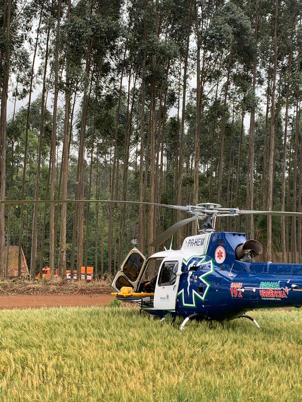 A equipe do helicóptero do Paraná Urgência/CONSAMU deslocou-se até a Linha Peroba, zona rural do município de Guaraniaçu na tarde desta quinta-feira (20) para realizar o atendimento de um homem de 44 anos.
