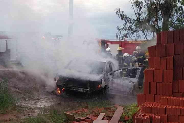Ao mesmo tempo em que atendia a situação do homicídio do homem e da tentativa de homicídio da mulher, a PM foi informada sobre um incêndio veicular. O fato ocorreu nos fundos do bairro Metropolitano.