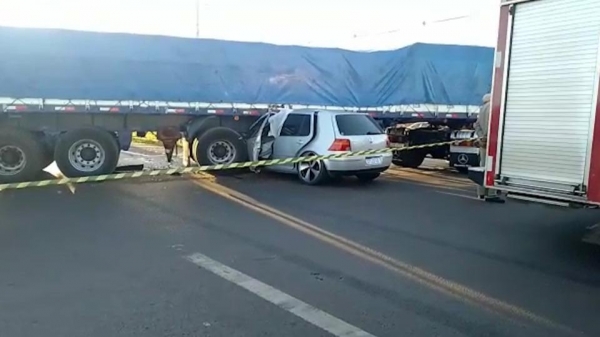 A batida envolveu um caminhão e um automóvel, sendo que o condutor do veículo Golf morreu na hora.