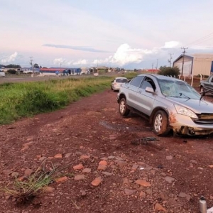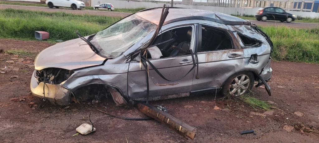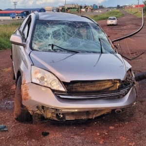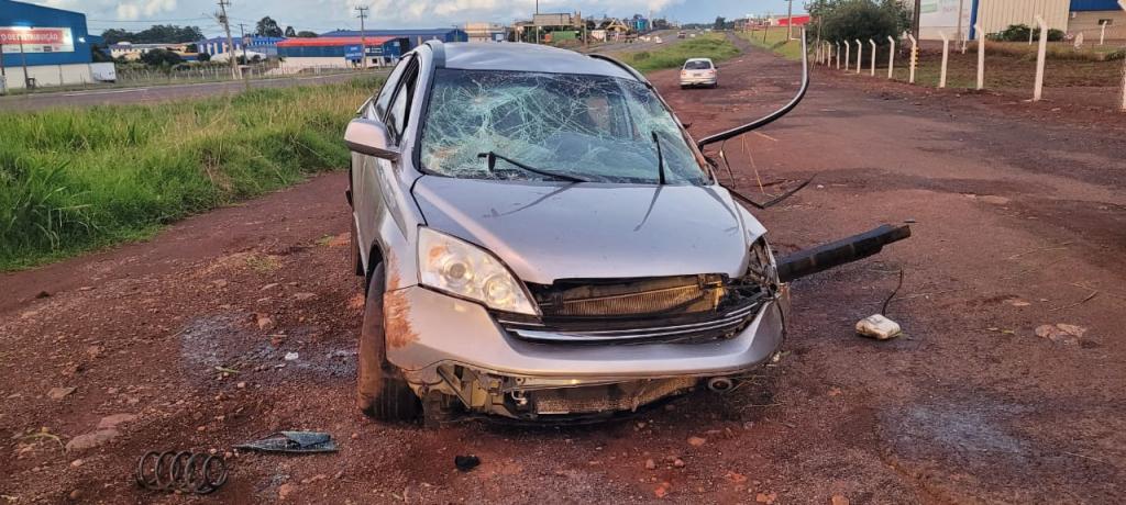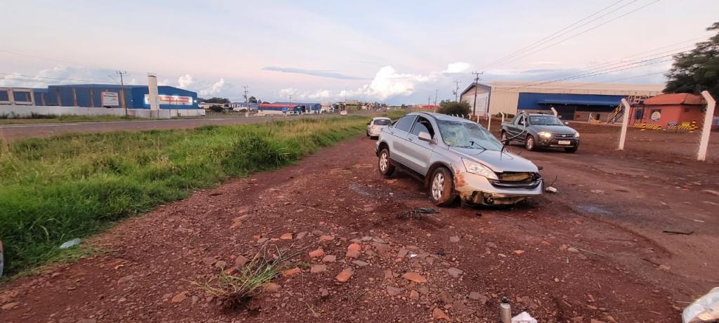 O veículo envolvido, o automóvel I/Honda CR-V LX. Com base na análise dos vestígios materiais identificados, constatou-se que Honda trafegava na faixa de trânsito do sentido Céu Azul a Cascavel, quando, saiu da pista e capotou.