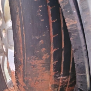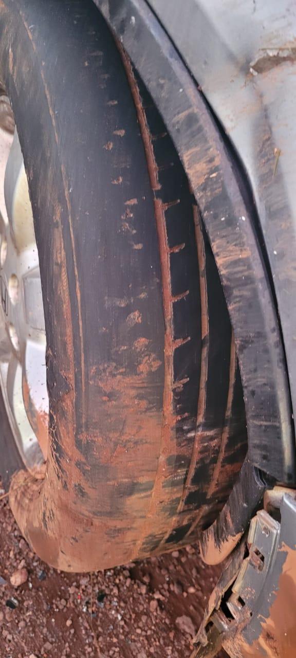 O veículo apresentava pneus em mau estado de conservação.