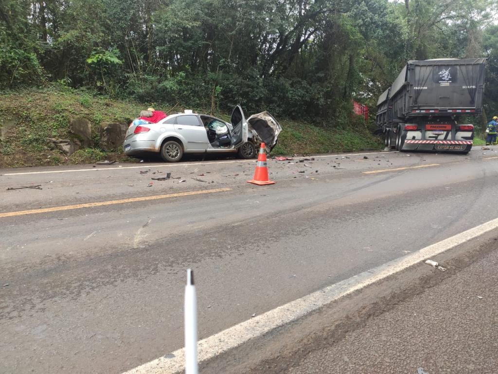 O condutor do carro morreu no local. A passageira sofreu ferimentos graves e foi encaminhada ao hospital. O motorista do caminhão não teve ferimentos.