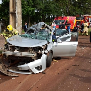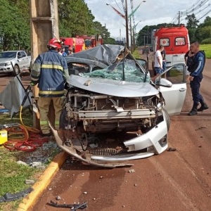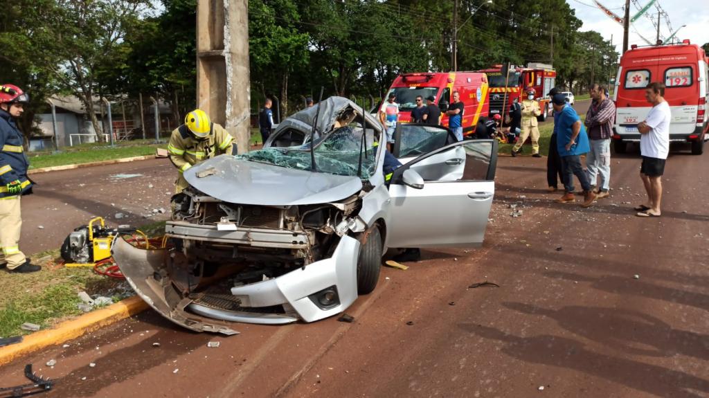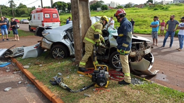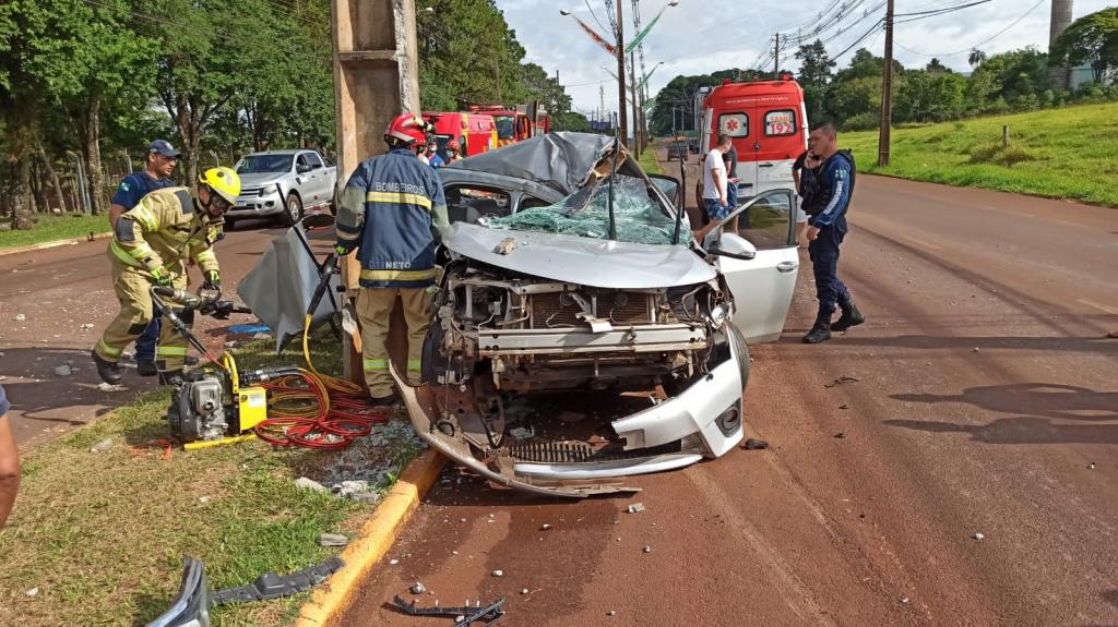A batida de um carro contra um poste deixou um homem morto e duas pessoas gravemente feridas, na Avenida Ministro Cirne Lima, em frente ao clube Yara, na saída de Toledo para o município de Ouro Verde do Oeste, na manhã deste domingo (18).