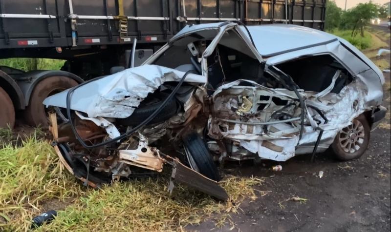 A grave colisão aconteceu a 8 km da Ponte Ayrton Senna, no lado sul-mato-grossense, envolvendo um Fiat/Uno e duas carretas.
