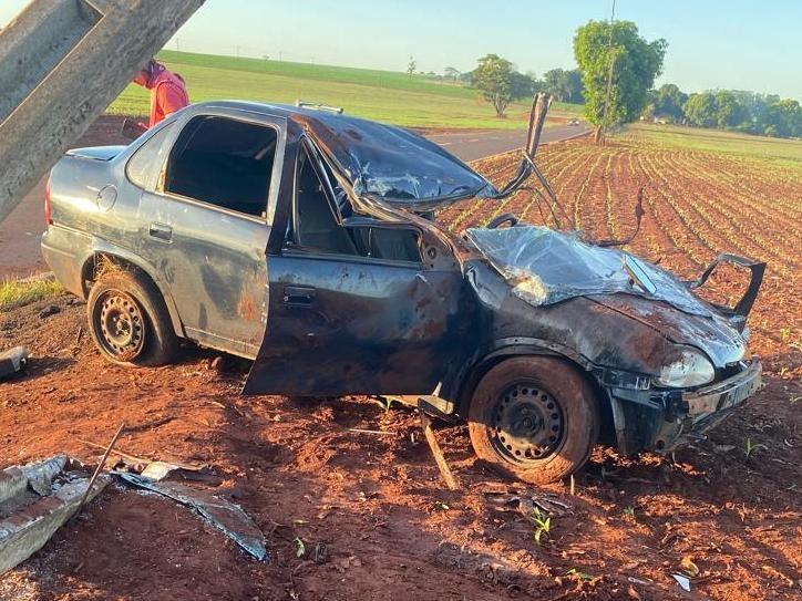 Conforme as primeiras informações, um GM/Corsa licenciado no estado de São Paulo seguia pela rodovia municipal, quando capotou várias vezes próximo ao Cruzeirinho. O veículo só parou ao atingir um poste às margens da rodovia.
