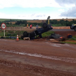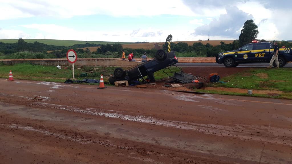Segundo as informações, o condutor seguia pela via sentido Toledo quando possivelmente o carro aquaplanou e saiu da pista. O utilitário capotou no acostamento sendo que parou com as rodas para o alto.