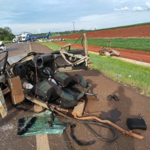 "Pela questão da distância e da possibilidade (do quadro clínico) da vítima evoluir mal. Era uma vítima com ferimentos moderados e poderia evoluir mal. Seria uma senhora, já de idade, e com trauma em tórax. Ele foi encaminhado pela aeronave do Samu, no entanto estava com os sinais estáveis até o momento", comentou o Tenente do Corpo de Bombeiros sobre a idosa, de 84 anos, que ocupava o Renault Sandero.
