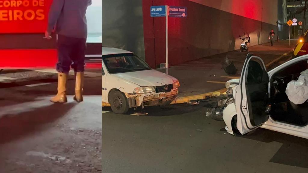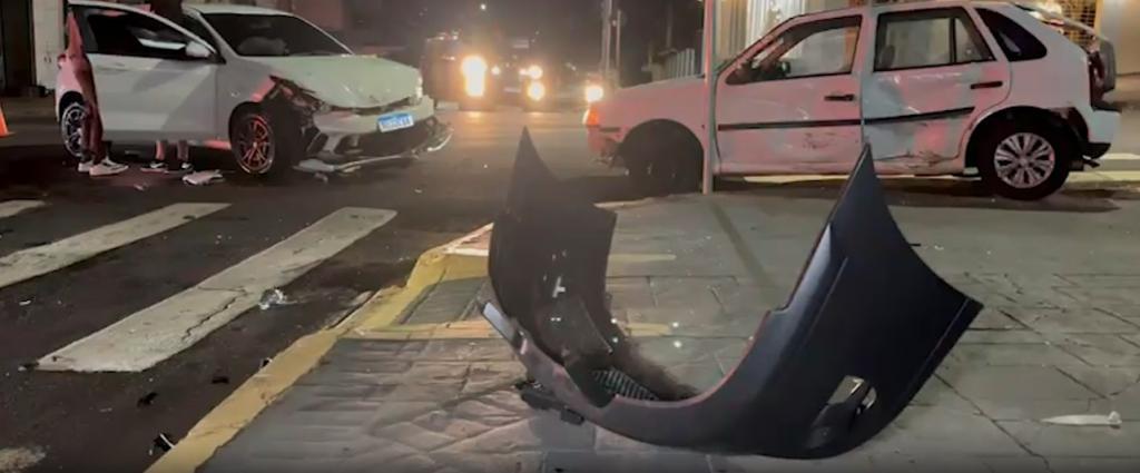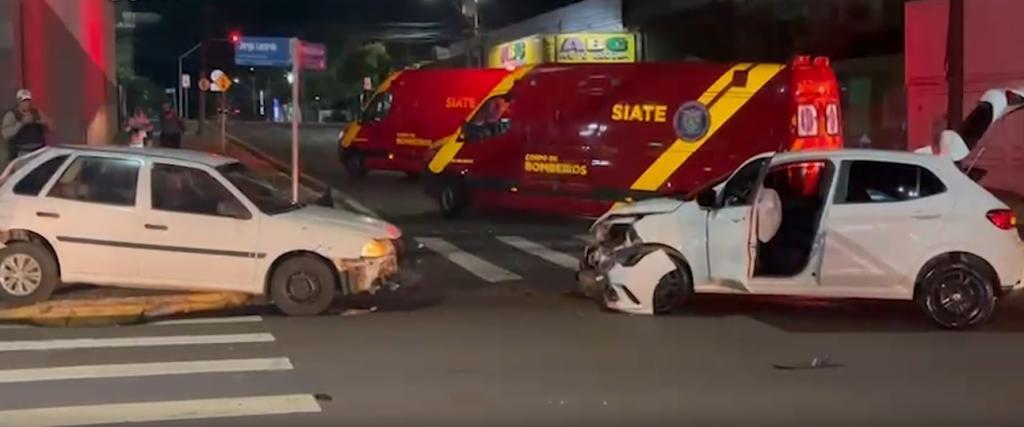 Uma forte batida entre dois carros mobilizou o Corpo de Bombeiros no Centro de Cascavel, na noite de ontem (19). O fato envolvendo um Volkswagen Gol e um Fiat Argo ocorreu no cruzamento da Rua Jorge Lacerda com Rua Presidente Kennedy.