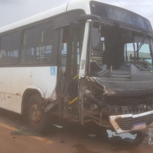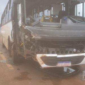 A colisão aconteceu em frente a TRR Sul e envolveu um ônibus e uma caminhonete Silverado.