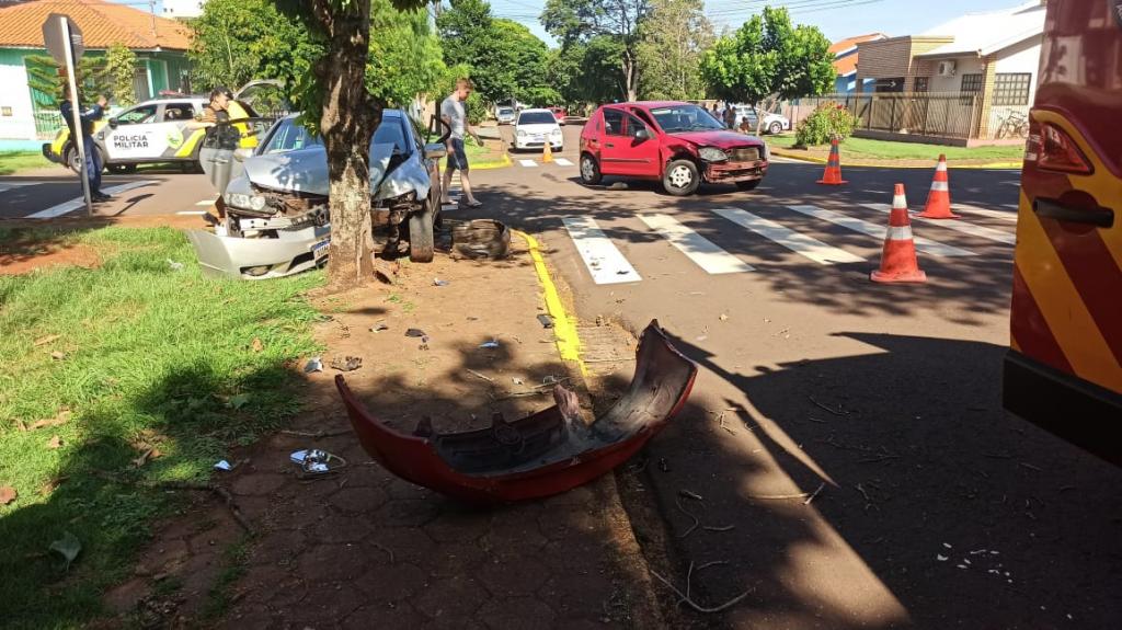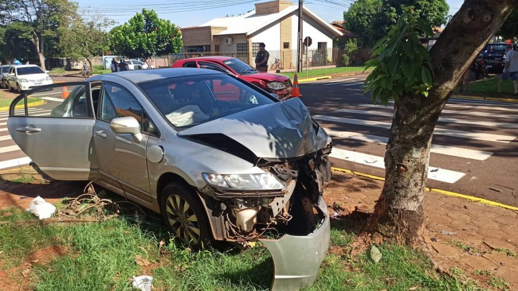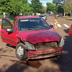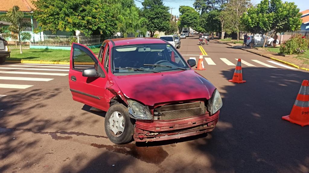 O veículo Chevrolet Celta e um veículo Honda Civic colidiram na manhã de hoje no cruzamento da rua Cerro Largo com rua São Francisco no bairro Jardim Porto Alegre em Toledo.