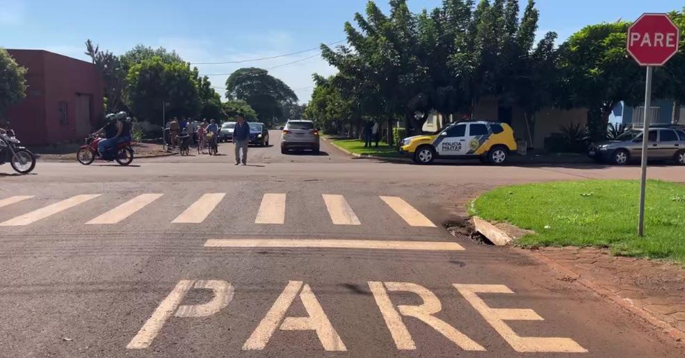 A esquina da rua Boa Vista com a Três de Maio em Nova Santa Rosa registrou um acidente no final da manhã desta sexta-feira.