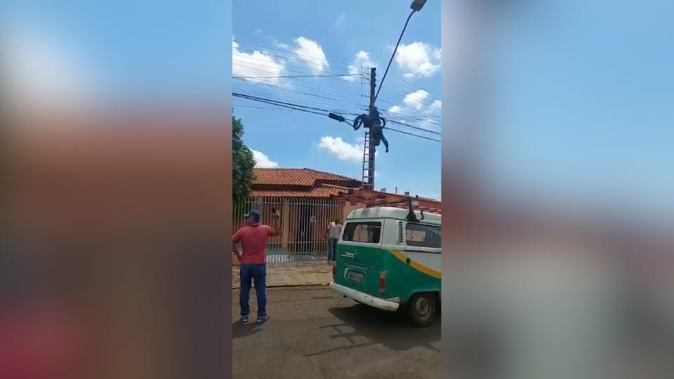 Após o choque, ele ficou inconsciente e acabou ficando pendurado pelos equipamentos de segurança.