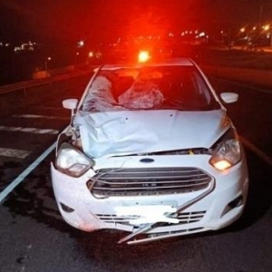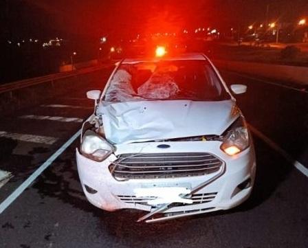 O homem foi atingido por um veículo Ford Ka que trafegava na rodovia sentido Toledo, enquanto andava na via próximo ao acostamento.
