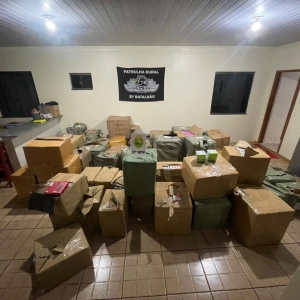Um homem foi preso, durante a madrugada desta segunda-feira (19), com cerca de 56 volumes de mercadorias contrabandeadas do Paraguai.