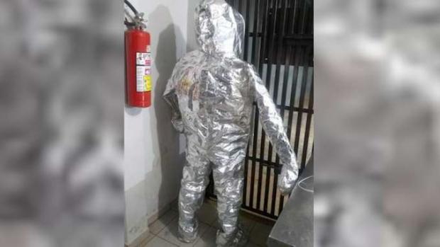 O homem de 28 anos foi preso com drogas no interior do Fórum de Cambé, pela Polícia Militar, na quinta-feira (6). O inusitado é que ele vestia uma roupa térmica prata e chamou a atenção por parecer um "astronauta".