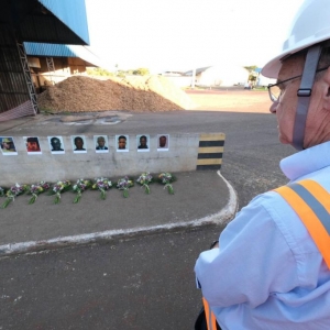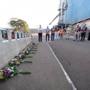 Funcionários da C.Vale em cinco estados brasileiros e no Paraguai fizeram, nesta quarta-feira (2), um minuto de silêncio em homenagem às vítimas da explosão do dia 26 de julho. Eles paralisaram, por um minuto, suas atividades exatamente às 17h01, horário em que ocorreu a explosão em armazéns de grãos uma semana atrás. Na sede da cooperativa, em Palotina, flores foram depositadas em homenagem aos oito trabalhadores haitianos e a um brasileiro que faleceram em decorrência do acidente.