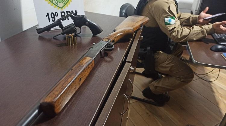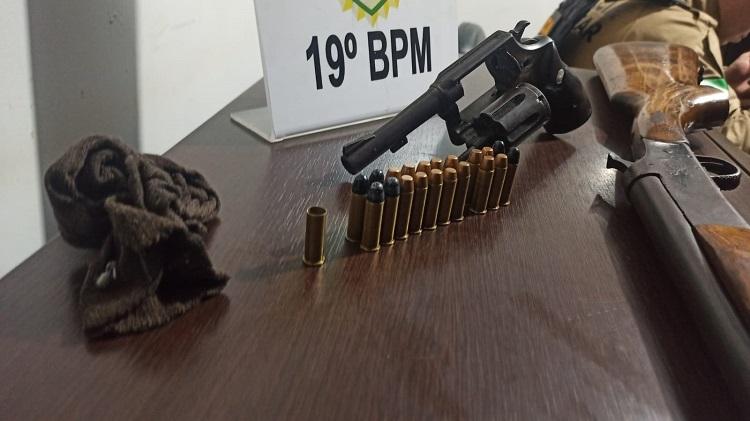 Entretanto, a mãe dos envolvidos confirmou que o filho possuía sim um revólver e que, ao perceber a chegada da polícia, ele teria escondido a arma. Diante da contradição dos relatos, a equipe realizou buscas na residência com a autorização da família, localizando uma espingarda calibre 36, da marca Boito, sem munições, escondida sobre um guarda-roupa.
