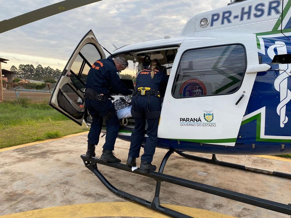 A vítima de 50 anos foi atingida no rosto e afetou as vias aéreas. Ela foi socorrida em estado grave pelo helicóptero do samu e encaminhado ao hospital Universitário de Maringá (HU).
