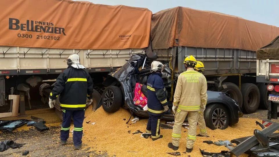 A família viajava para Erechim, no Rio Grande do Sul, sentido sudoeste do estado, quando se envolveu no acidente. A ocorrência foi registrada no km 150 da rodovia, sendo que o carro SUV Tiggo, onde a família estava, ficou prensado entre os caminhões.