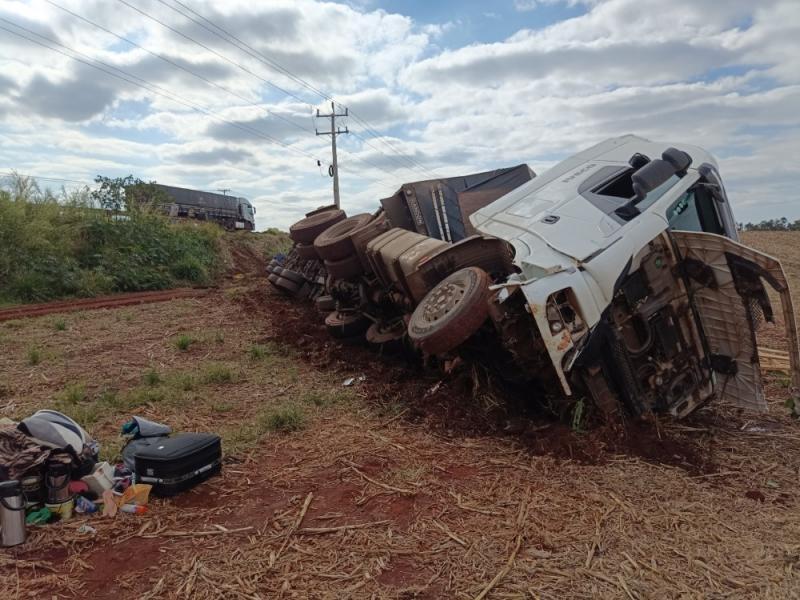 Na carreta, que tombou em uma ribanceira após a batida, estavam um homem e uma mulher. Os dois tiveram ferimentos leves e foram encaminhados para atendimento médico.