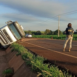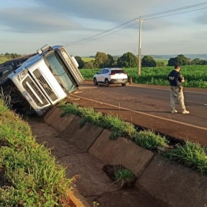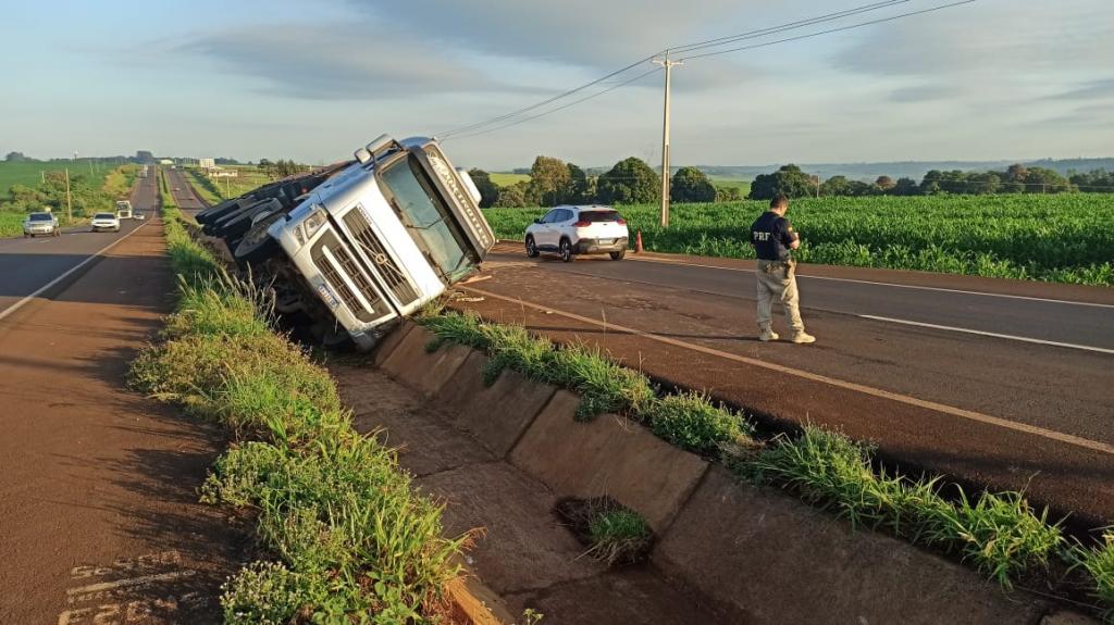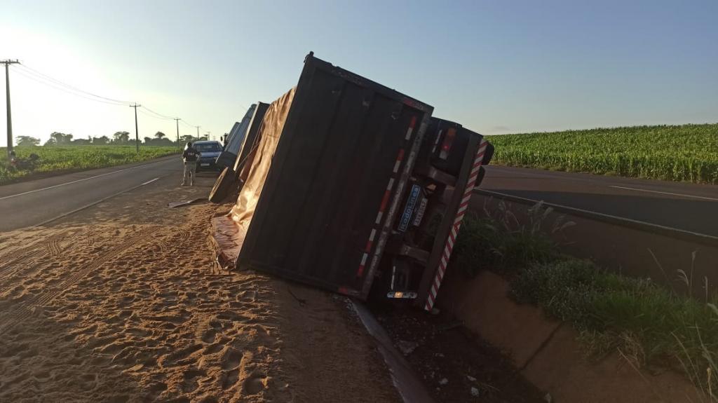 De acordo com informações da Polícia Rodoviária Federal (PRF), o caminhão Volvo com placa Mercosul, carregado com areia, trafegava no sentido Toledo, quando o Joel perdeu o controle da direção e o veículo tombou no canteiro central da rodovia.