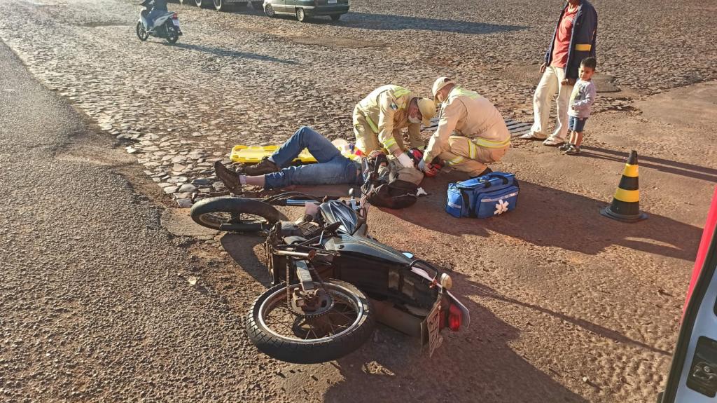 O condutor da moto Yamaha XTZ 125 cilindradas trafegava pela avenida e quando a idosa atravessou a via e foi atropelada, a senhora foi socorrida pelo corpo de bombeiros com uma liceraçåo na perna direita e também no braço direito com suspeita de fratura de costela.