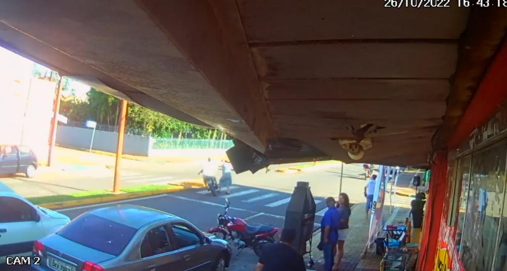 Após atropelar a idosa o motociclista evadiu-se do local sem prestar socorro, imagens de câmeras de segurança gravaram o acidente.