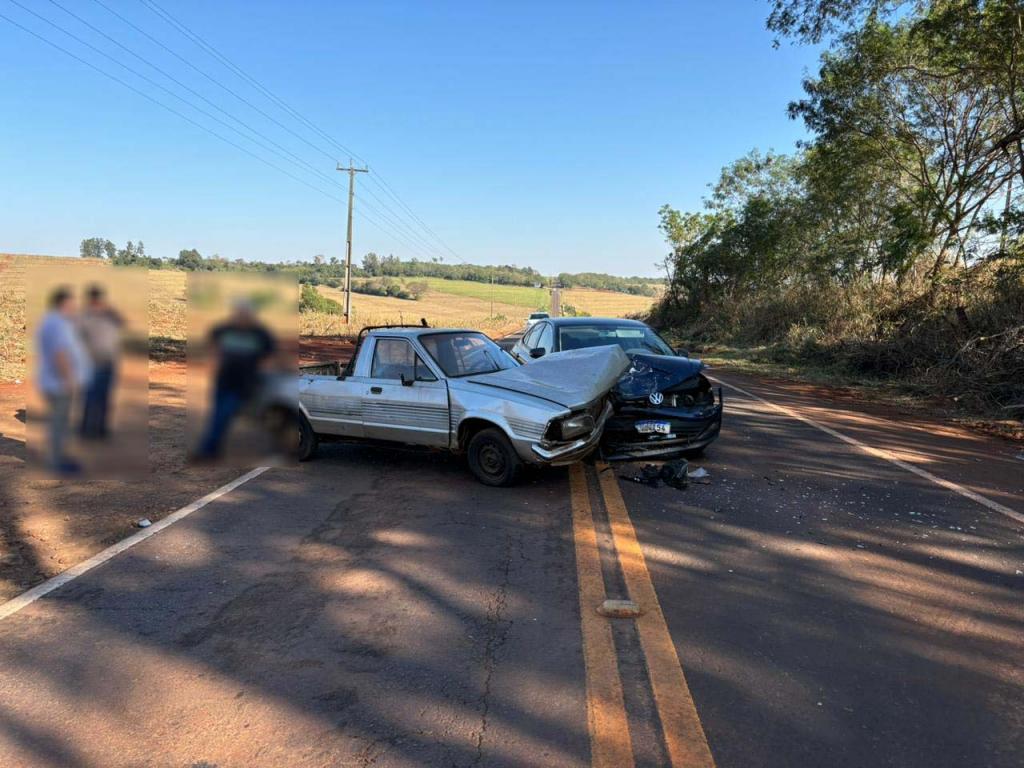 Conforme informado pela equipe policial, o Volkswagem seguia pela rodovia sentido à Jesuítas, quando colidiu com a Pampa que saia de uma estrada rural.