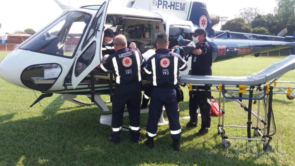 A ambulância do Samu de Palotina foi quem realizou o translado do paciente do Hospital até o Estádio Municipal, local de pouso do helicóptero.