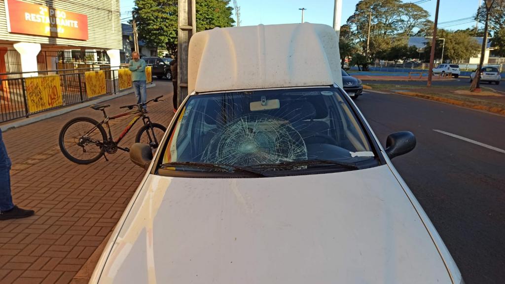 O ciclista identificado como João de 64 anos estava atravessando a avenida Ministro Cirne Lima no Jardim Coopagro na tarde de hoje, por volta das 16h40, quando foi atingido por uma caminhonete que não parou e jogou o ciclista contra o para-brisa de um Fiat Strada com placas de Cascavel.