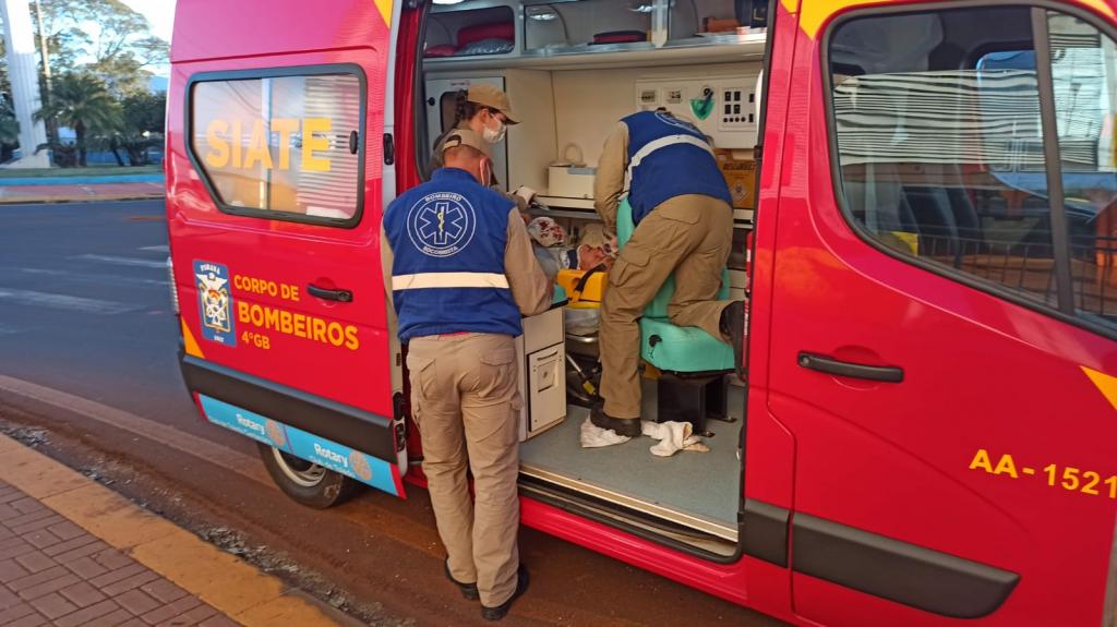 O idoso foi socorrido por uma equipe do corpo de bombeiro com escoriações e machucaduras no nariz e na face e encaminhado para atendimento hospitalar.