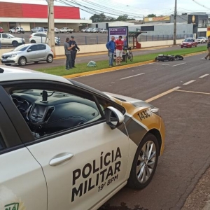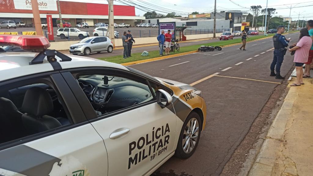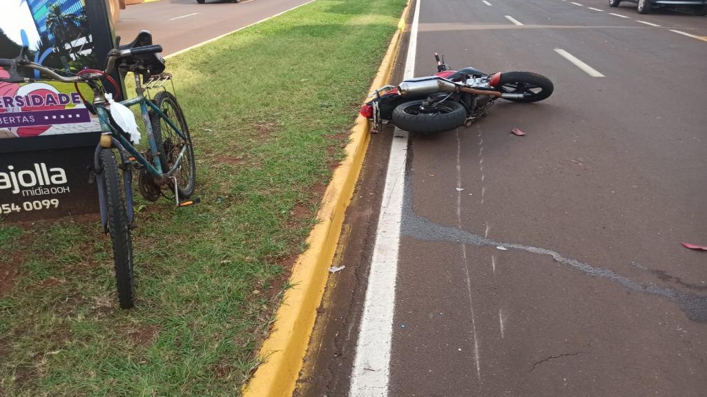 Um acidente entre uma moto e uma bicicleta foi registrado na tarde desta quarta-feira (20) na avenida Senador Atílio Fontana, jardim Panorama, em Toledo.