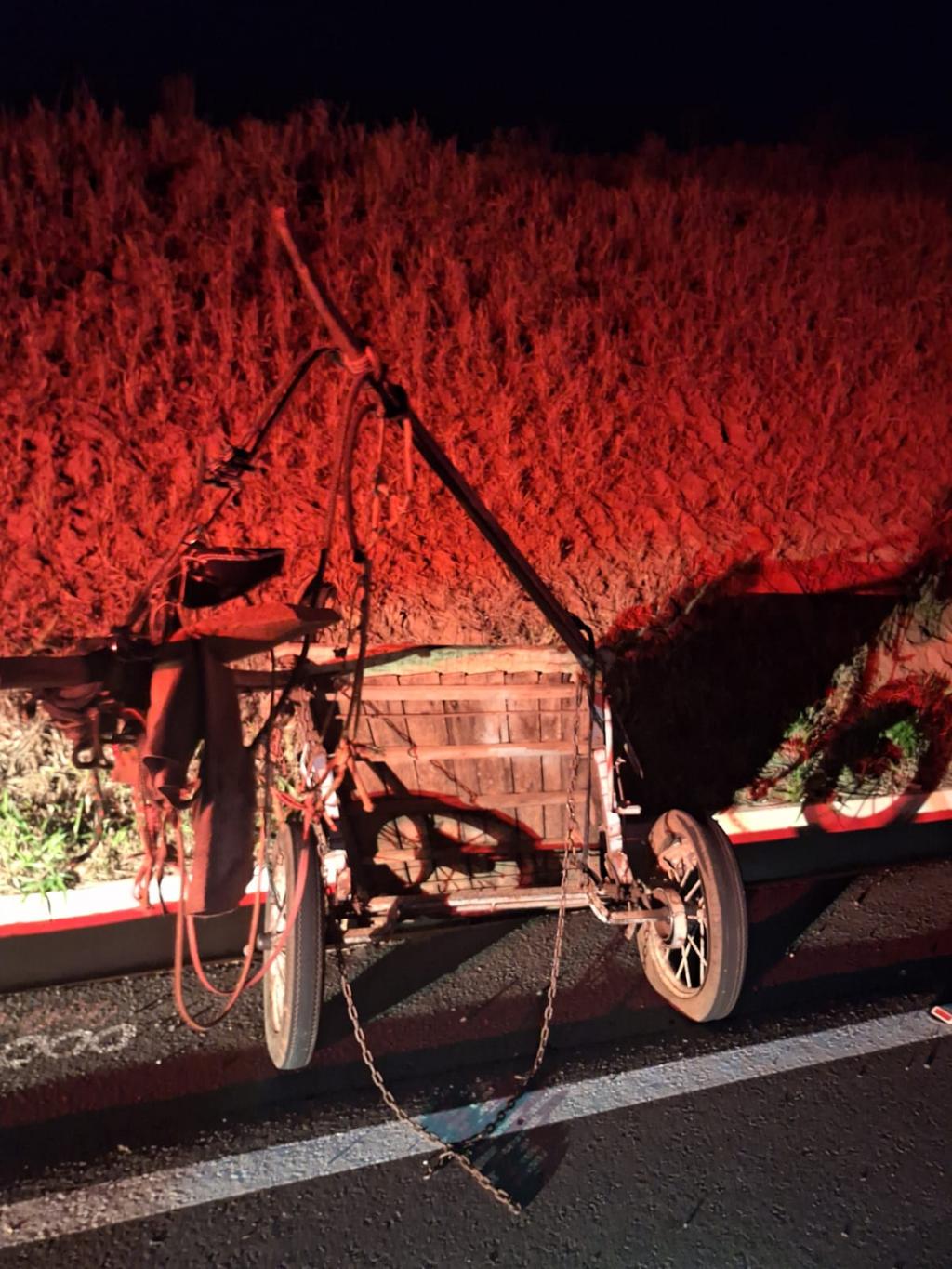 Conforme informações da Polícia Rodoviária Federal, o cavalo que puxava a charrete sobreviveu.