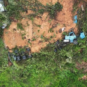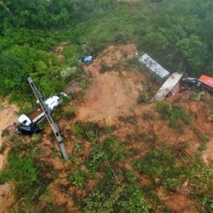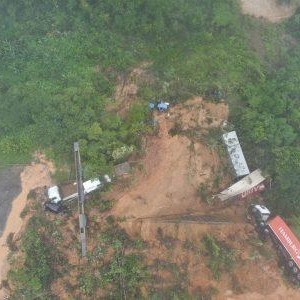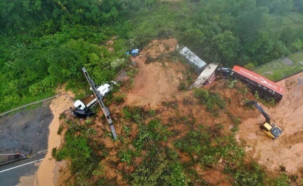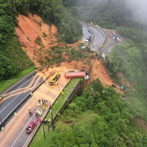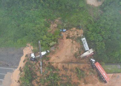 Imagem aérea mostra destruição na BR-376 após deslizamento em Guaratuba