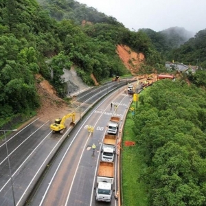 - Houve dois deslizamentos. O primeiro começou às 15h30 de segunda, quando um talude cedeu no trecho de serra e uma das pistas foi interditada. O trânsito fluiu por pista única. Às 19h30, houve novo deslizamento, carros foram atingidos e os dois sentidos da rodovia foram interditados.