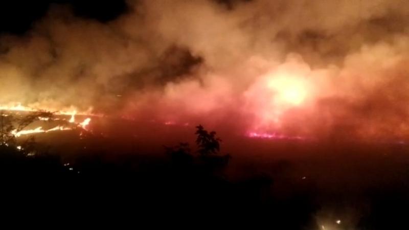 Um incêndio de grandes proporções foi registrado na noite de quinta-feira (23), em Guaíra. Conforme o Corpo de Bombeiros, o incêndio atingiu uma área e vegetação, nos fundos da Vila Pioneira.