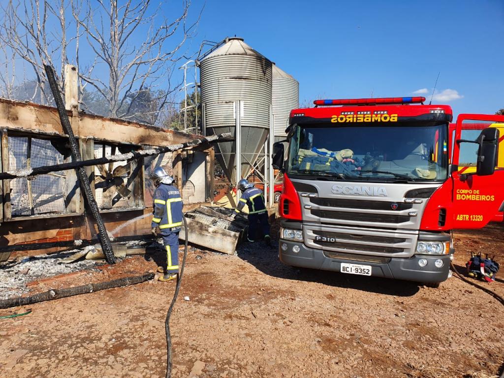 Segundo informações repassadas, o fogo começou após problema em um dos fornos da granja, após manutenção.