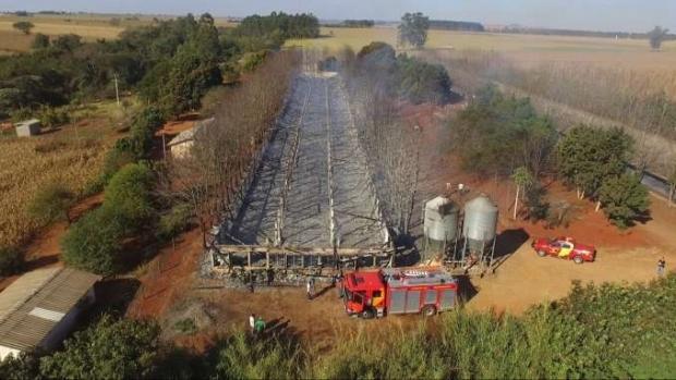 O grande incêndio registrado na granja, na cidade de Ângulo, região metropolitana de Maringá, deixou o prejuízo de meio milhão, na tarde desta quarta-feira (31).